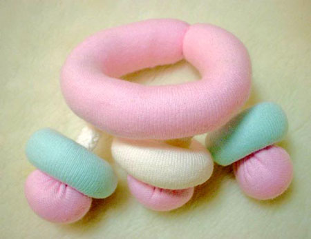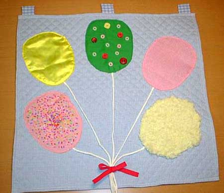 ビーズのぽつぽつや、毛糸のふわふわ、ナイロンタオルのざらざらなどいろいろな触感が楽しめます。お気に入りはどれかな?