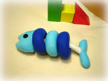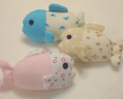 さかな の にぎにぎ です。おなかを押すとキュッキュッと鳴ります。