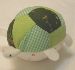 かめ の形の布ボールです。転がると鈴が鳴ります。