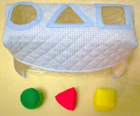 フェルトの型をぽとんと落とすと、下のほうからころころっと出てきます。初めて出会うパズル。