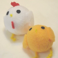 布ボール。にわとり と ひよこ の形です。転がると鈴が鳴ります。