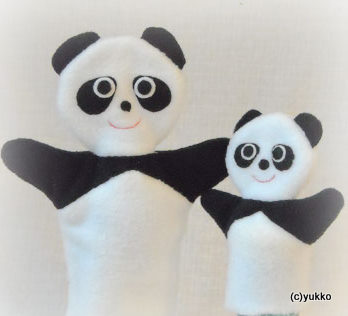 パンダの指人形です。大人用と子ども用の指人形(ハンドパペット)で、親子で楽しく遊べます。