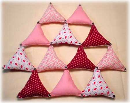 正三角形の頂点にスナップがついています。立体的な組み合わせが楽しめます。はめるのは2歳ぐらいから。はずすのは1歳からでも楽しめます。