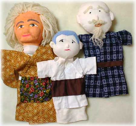 「三枚の御札」のお話を指人形(ハンドパペット)にしました。やさしいお婆さんが鬼婆に変身します。小僧さんは三枚の御札で逃げ切ることができるでしょうか?