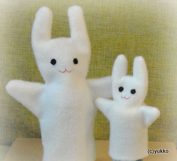 うさぎの指人形です。大人用と子ども用の指人形(ハンドパペット)で、親子で楽しく遊べます。