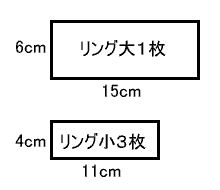 4つの輪の作り方 1. 材料 ニット生地・・・黄・白・ピンク 綿 鈴・・・1個 2. 型紙イメージ 3. 作り方 「マシュリング」小を3個作る。 「マシュリング」大の綿をつめながら、鈴を入れる。 「マシュリング」小3個を通して、大を縫いあわせる。 「マシュリング」の作り方 半返し縫いで、細長く、筒状に縫う。 ピンセットで裏返し、綿をつめる。 伸ばしながら、リング状にし、かがる。