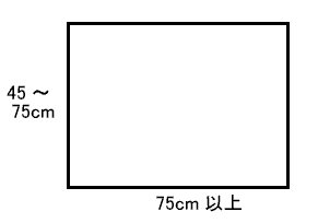 スカートの作り方 1. 材料 布・・・45〜75cm×75cm以上 (レース・裏地・パッチワーク風など、素材・長さは工夫次第) ゴムひも・・・1m 2. 型紙イメージ 3. 作り方 布を筒に縫う。 すそは、三つ折りなど。 ウエスト部分は、ゴムひもが、二本通せるように縫う。 50cmに切ったゴムひもを、二本通す。