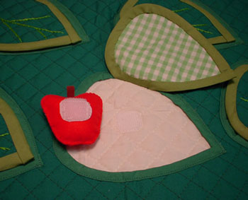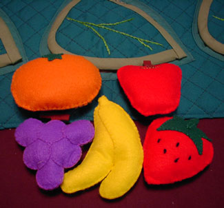くだものは面ファスナーまたはスナップつきで取り外しできます。 つける場所を変えて 「いちごはど〜こだ?」 なんて当てっこをしても楽しいですね。