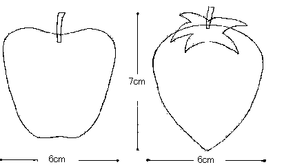 タペストリー・くだものの作り方 1. 材料 キルティング生地・・・生なり 53cm×75cm 緑 35cm×55cm 綿生地・・・こげ茶 25cm×55cm バイアステープ・・・緑・黄緑 フェルト・・・赤・黄・紫・緑・オレンジ 綿 刺繍糸 スナップ・・・5個(または面ファスナー) 2. 型紙イメージ 3. 作り方 緑のキルティングを5枚、葉っぱ型に切り抜く。 葉脈の刺繍をする。 切り抜いた葉っぱの内側と外側を、バイアステープでくるむ。 生なりのキルティングに、木と葉を縫い付ける。 フェルト2枚を合わせ、綿少々をいれて、くだものを作る。 葉っぱの下と、くだものに、スナップをつける。(または面ファスナー) 棒通し部分をつけながら、生なり生地の周りを縫う。