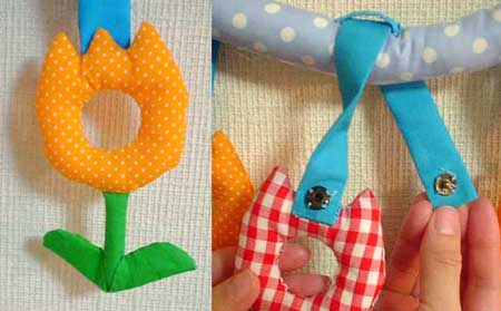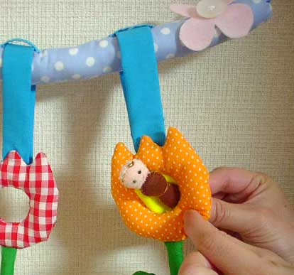 チューリップは取り外し可能です。 ベビーカーにつけたり、にぎにぎとしても遊べます。
