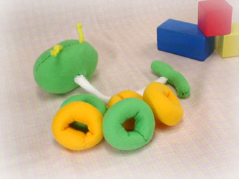 あおむしくんの体の部分がマシュリングになっていて、はずしたりはめたりできます。